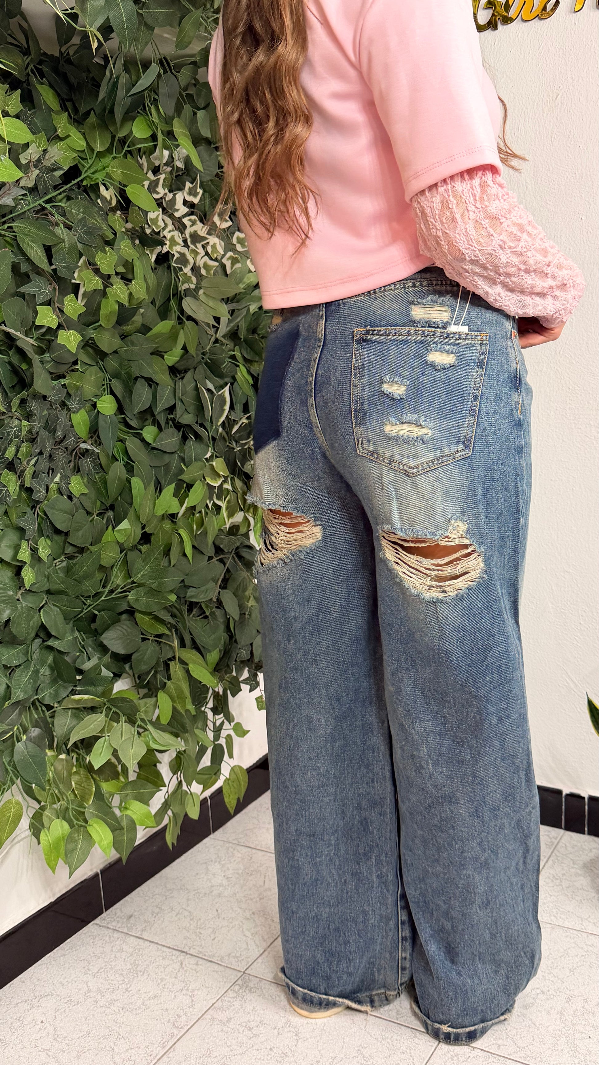 Jeans con strappo sul retro.