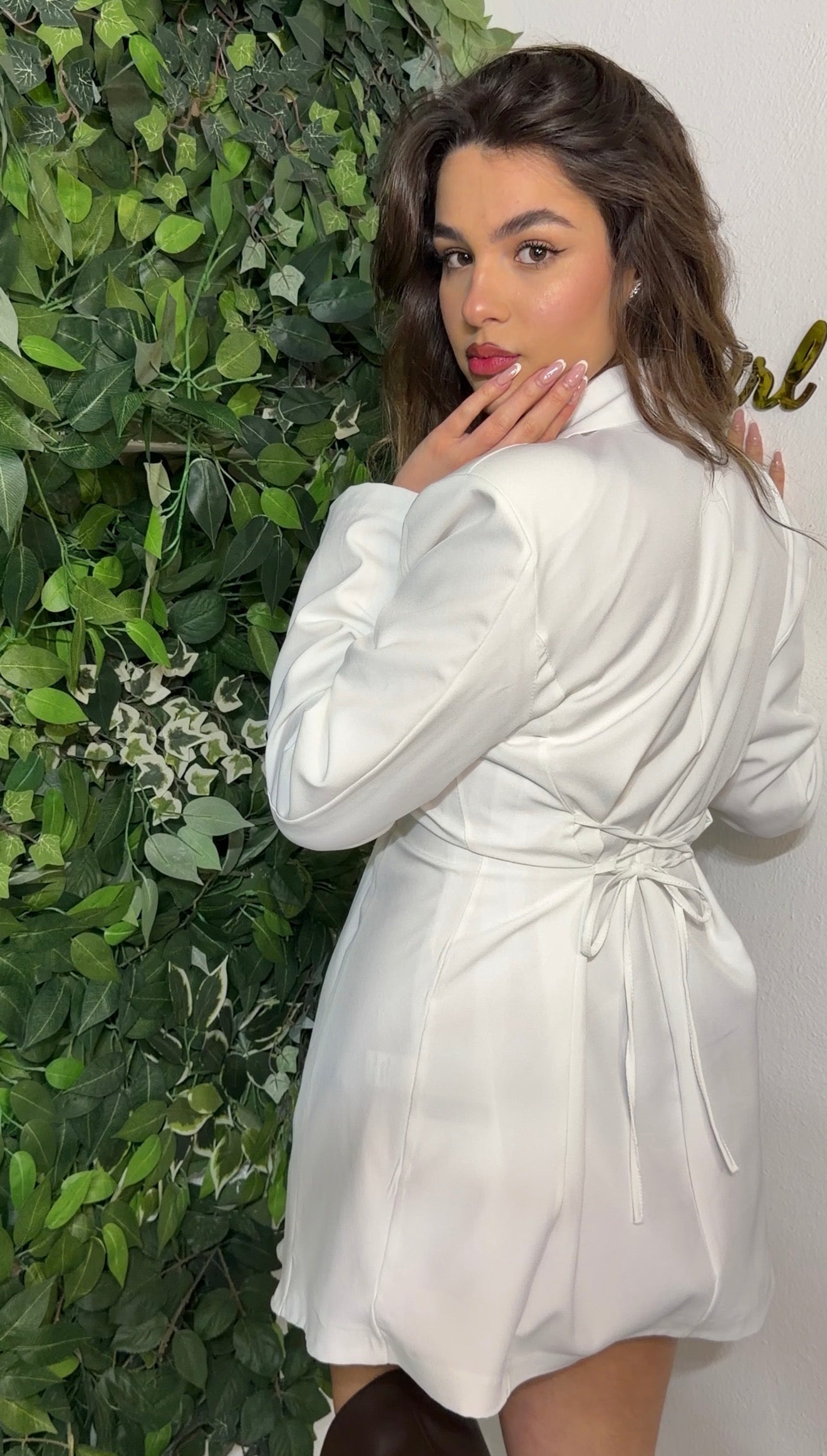 Giacca con bottoni frontali e laccio sul retro che valorizza il punto vita.